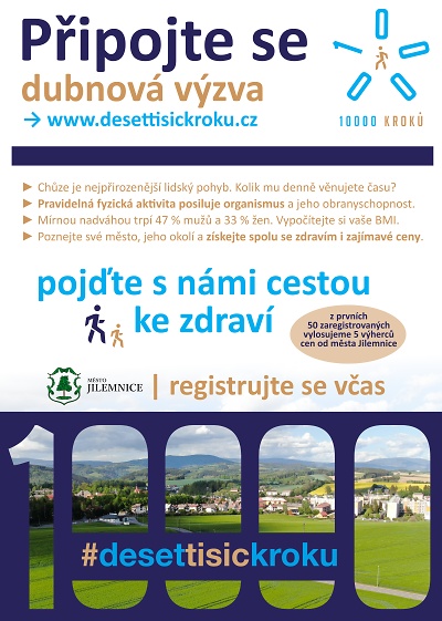Město Jilemnice se zapojilo do projektu 10 000 kroků v rámci Partnerství pro městskou mobilitu. Na duben je vypsána velmi zajímavá výzva - připojte se a pojďte cestou ke zdraví.