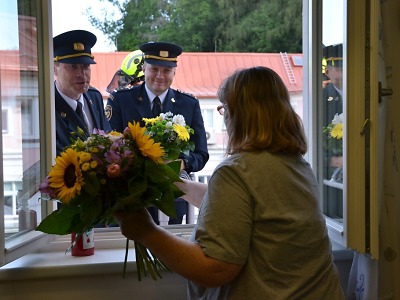 Před její kancelář na semilském zámku přistavili automobilový žebřík, ze kterého ji do okna ve čtvrtém nadzemním podlaží předával květiny náměstek krajského ředitele pro úsek prevence a CNP Jan Málek a ředitel územního odboru Semily Jiří Kovalský. Rozloučit se přišli také sloužící hasiči ze směny.