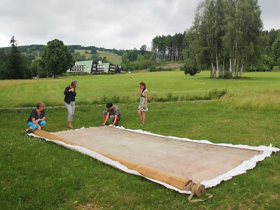 Více než stoletá historická opona divadelních ochotníků z Pasek nad Jizerou zamířila právě před týdnem do restaurátorské dílny Luboše Machačka z Litomyšle. Po obnově těžce poškozené památky na divadelnický život Pasečáků se na ni budete moct těšit v nové expozici paseckého Památníku zapadlých vlastenců.