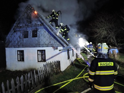 Hořela chalupa v Jesenném, při zásahu se zranil jeden z hasičů