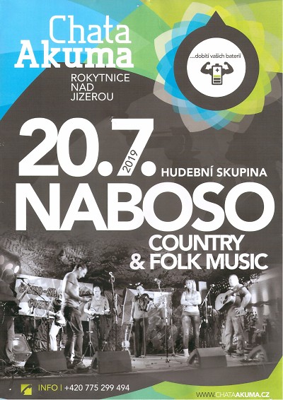 Oblíbená rokytnická country & folk kapela Naboso zahraje v sobotu 20. července od 19.30 na Chatě Akuma v Rokytnici nad Jizerou.