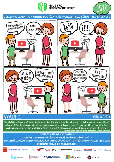 I letos se žáci a studenti základních a středních škol mohou zapojit do soutěže s projektem Kraje pro bezpečný internet, který se koná pod záštitou Asociace krajů České republiky. Jsou pro ně připraveny aktualizované e-learningové lekce a krátké videospoty, kde se dozví nejdůležitější informace z oblasti bezpečného chování na internetu.