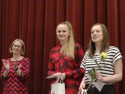 Na jeviště přišla ředitelka knihovny Jitka Šedinová a vzápětí předala slovo patronce soutěže a vášnivé čtenářce, starostce Leně Mlejnkové. Než došlo na stupně vítězů, slavnostní atmosféru vygradovalo duo Kateryna Sochaň a Barbora Voleská zpěvem v doprovodu kytary.