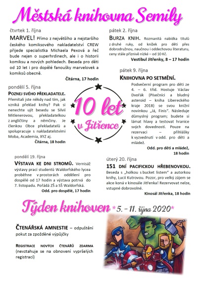 Městská knihovna Semily slaví v říjnu deset let v Jitřence!