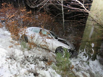 Ve Zlaté Olešnici řidič s vozidlem dostal na sněhu smyk a skončil mimo vozovku, kde narazil do vzrostlého stromu. Událost se stala ve středu 2. ledna v 19 hodin, dva lidé byli zraněni a škoda je vyčíslena na 120 tisíc korun.