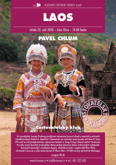 V rámci cestovatelského klubu můžete v Turnově ve starobylém Luang Prabang prožít slavnostní procesí slonů a mnichů z místních buddhistických klášterů nebo společně s domorodci tu oslavit nový laoský rok Bun Pi Maj. To vše při zářijové besedě s Pavlem Chlumem o Laosu.