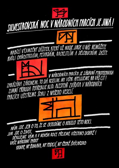 Na území všech čtyř národních parků České republiky, tedy NP Šumava, NP Podyjí, NP České Švýcarsko a Krkonošského národního parku, se oslavy příchodu Nového roku musejí už podruhé obejít bez zábavní pyrotechniky. Novela zákona č. 114 o ochraně přírody a krajiny ji zakazuje na celém území národních parků a to včetně obcí.