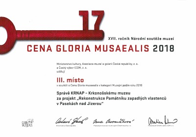 Generální rekonstrukce celé budovy i expozice pasecké pobočky Krkonošského muzea Správy KRNAP - Památníku zapadlých vlastenců získala III. místo v soutěži o Cenu Gloria musaealis v kategorii Muzejní počin roku 2018!