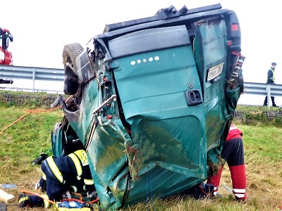 Doplněny fotografie! Policisté šetří havárii dodávky na silnici č. I/35 mezi Paceřicemi a Turnovem. K té došlo v úterý 3. listopadu před osmou hodinou. Řidič dodávky z dosud nezjištěných příčin havaroval s vozidlem přes střechu. V havarovaném voze, ve kterém s ním cestoval ještě spolujezdec, zůstal zaklíněný.