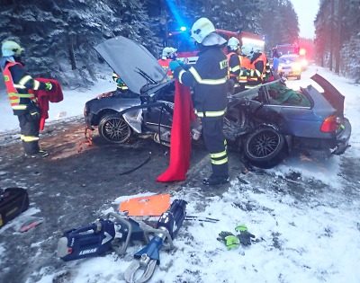Na místě nehody, při které řidič vozidla BMW pravděpodobně dostal smyk na vozovce, přičemž se čelně střetl s dodávkou, byly čtyři zraněné osoby a zasahoval i vrtulník Letecké záchranné služby. „Dvě z osob zůstaly zaklíněny v jednom z vozidel. Hasiči provedli protipožární opatření a použili vyprošťovací zařízení k úplnému odstranění střechy vozidla, aby zraněné z vozu vyprostili. Lékař na místě konstatoval úmrtí jedné osoby," uvedli krajští hasiči bezprostředně po nehodě na svém twitteru.