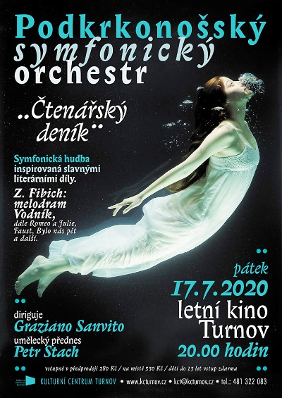 Navzdory koronaviru připravil Podkrkonošský symfonický orchestr další originální hudební program, tentokrát složený z klasické hudby vycházející ze slavné literatury. Koncertní program nazvaný Čtenářský deník představí publiku v pátek 17. července od 20 hodin v turnovském letním kině. Orchestr pod vedením Graziana Sanvita svým uměleckým přednesem doprovodí herec Petr Stach.