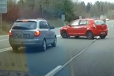 Na silnici I/35 u Turnova, zaznamenala palubní kamera manévr, při kterém se řidič červeného osobního automobilu otáčel na čtyřproudé komunikaci. Na kamerovém záznamu je patrné, že k manévru mělo dojít ve středu 26. března, krátce před 16. hodinou.