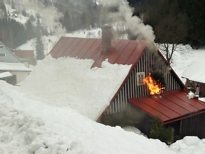 Aktualizováno o fotografie: V pátek odpoledne zasahovalo šest jednotek hasičů u požáru roubené chalupy v Jablonci nad Jizerou (části obce Horní Dušnice). Příčinou požáru byla nedbalost při manipulaci s horkým popelem. Škoda byla vyčíslena na 100 tisíc korun, uchránit se hasičům podařilo majetek v hodnotě 1,5 milionu korun.