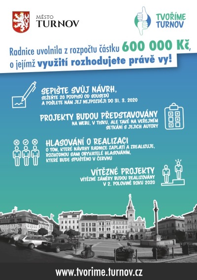 Město Turnov prodlužuje přijímání návrhů od občanů do letošního ročníku participativního rozpočtu Tvoříme Turnov, a to až do 30. dubna 2020!