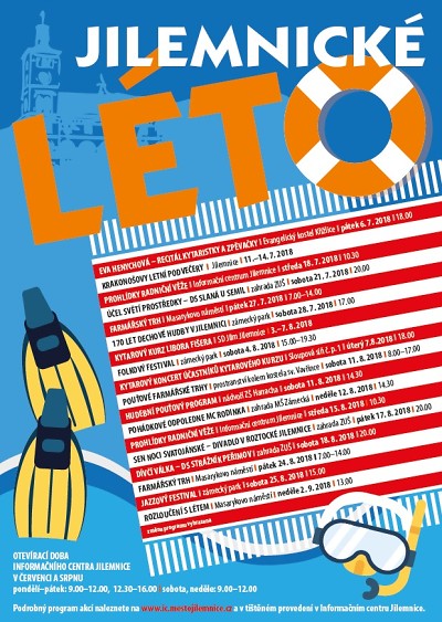 Otevírací doba Informačního centra Jilemnice v červenci a srpnu, kde se dozvíte více informací k jednotlivým akcím, je pondělí - pátek: 9.00-12.00, 12.30-16.00, sobota, neděle: 9.00-12.00.