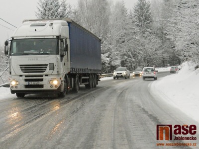 Kvůli sněžení uzavřou pro kamiony silnici z Tanvaldu do Harrachova