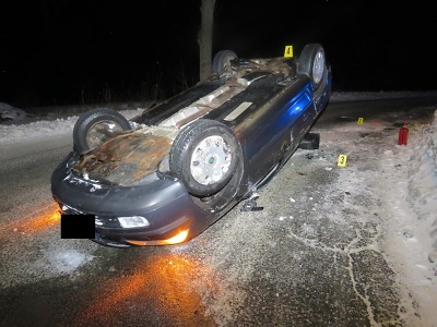 K dopravní nehodě došlo v neděli 6. ledna před 17.30 v katastru Zlaté Olešnice. Řidič s vozidlem Škoda Octavia jel po silnici třetí třídy ve směru od Haratic do Zlaté Olešnice, kde při najíždění do levotočivé zatáčky dostal na zledovatělém povrchu vozovky smyk, vyjel na svah vlevo a následně se s vozem přetočil na střechu.