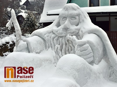 Obří sněhový Krakonoš stojí i u Labské boudy