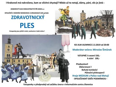 Tradiční zdravotnický ples pořádá MMN a.s. v sobotu 2. března. Program: předtančení TS Paul Dance, bohatá tombola, občerstvení a půlnoční překvapení. Moderátor večera bude herec Miroslav Šimůnek. K tanci zahraje kapela Medium z Police nad Metují. Ples začíná ve Společenském domě Jilm v Jilemnici ve 20 hodin.