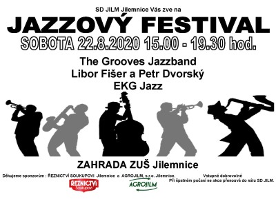 Jazzový festival se kvůli nepříznivé předpovědi počasí přesouvá do Společenského domu Jilm Jilemnice! Jazzový festival se koná na zahradě ZUŠ Jilemnice v sobotu 22. srpna od 15 hodin. Zahrají The Grooves Jazzband, Libor Fišer a Petr Dvorský, a EKG Jazz. Za špatného počasí se akce přesouvá do sálu SD Jilm. Vstupné dobrovolné. | více