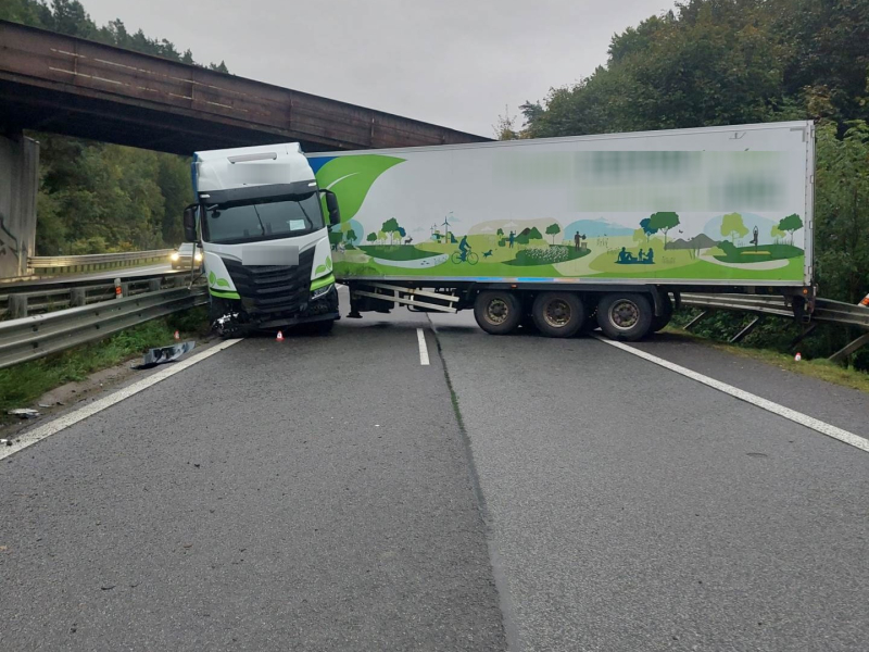 Fotogalerie - Na silnici R35 u Žďárku narazil kamion do svodidel