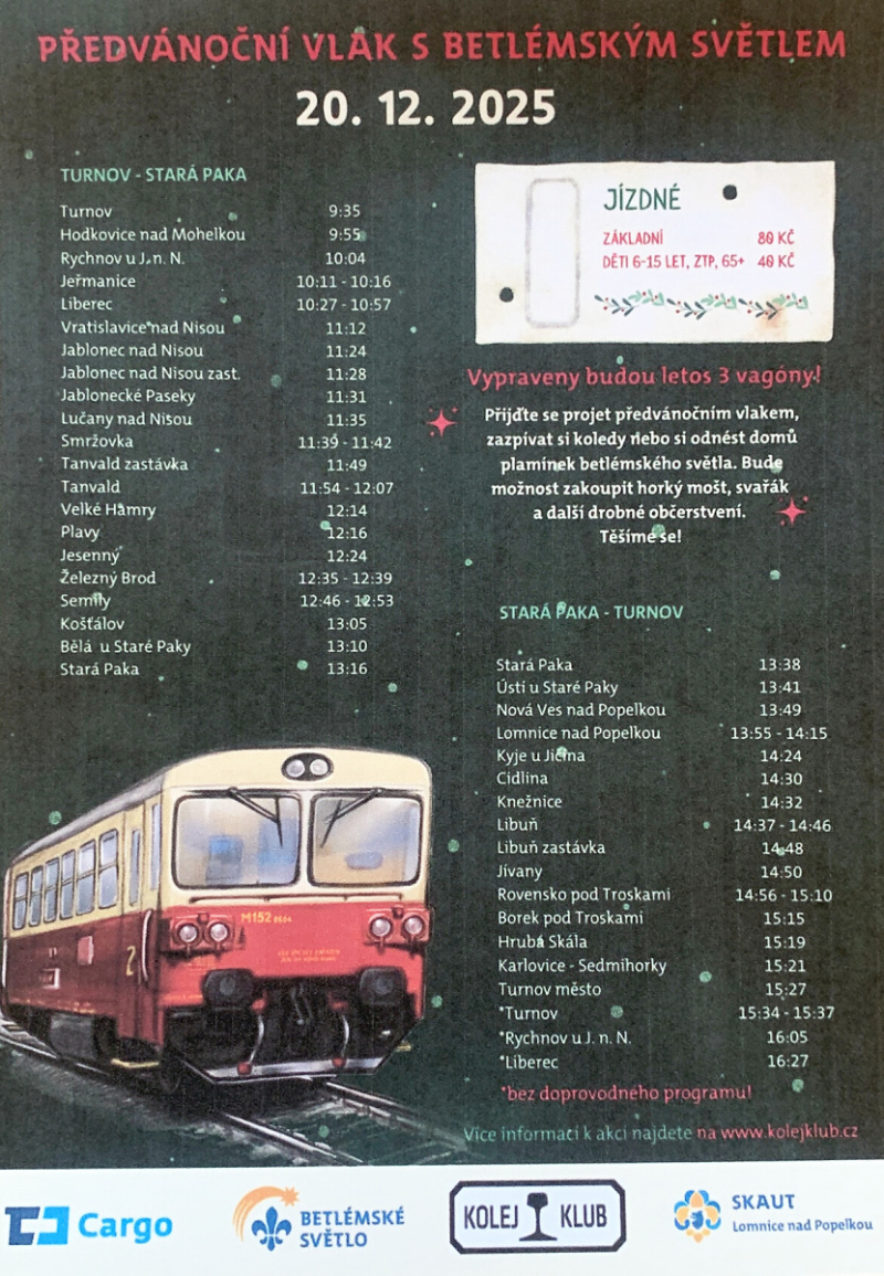 Otevřít související aktualitu: VIDEO: Vlak s betlémským světlem jezdil na trase Turnov - Stará Paka