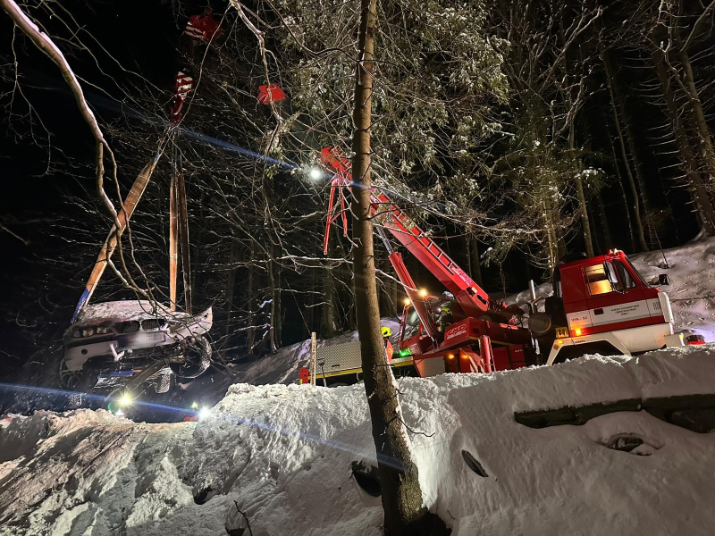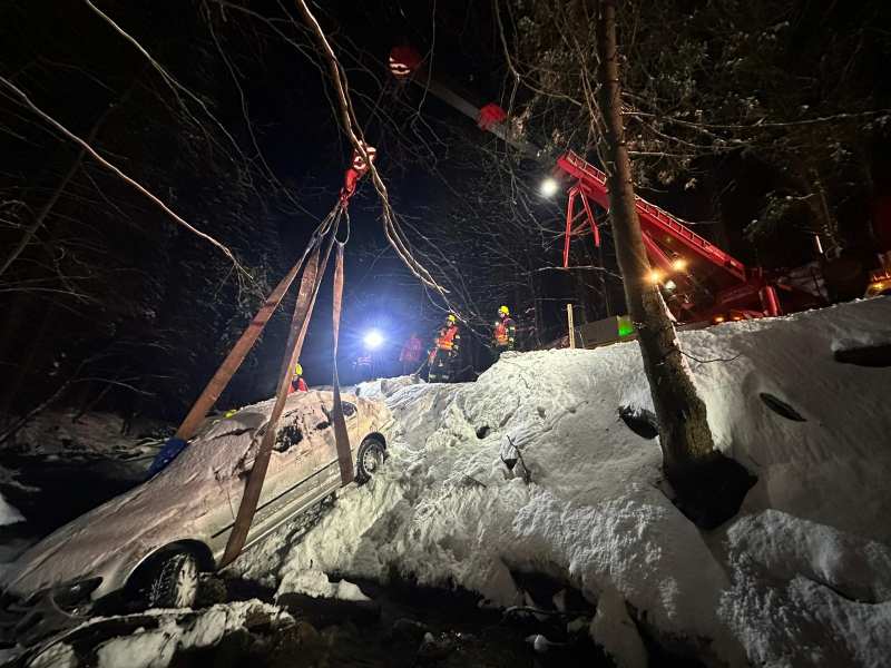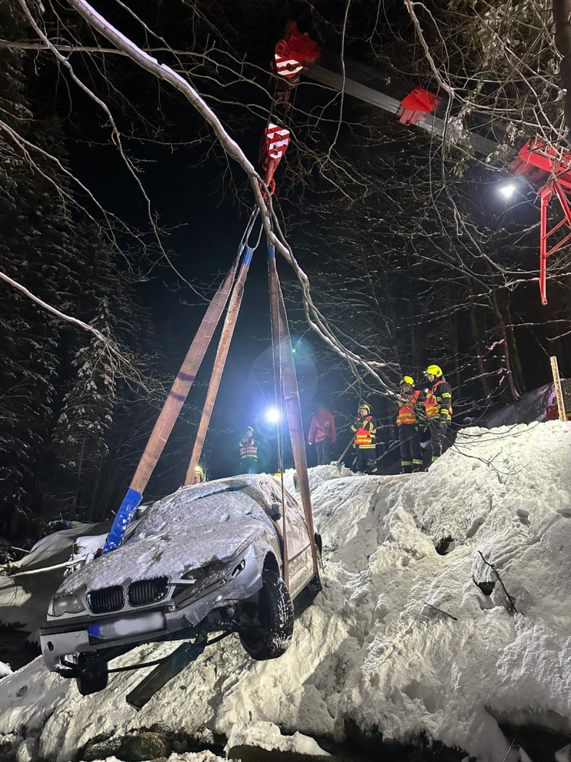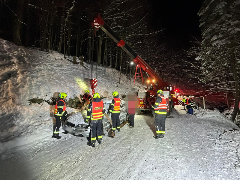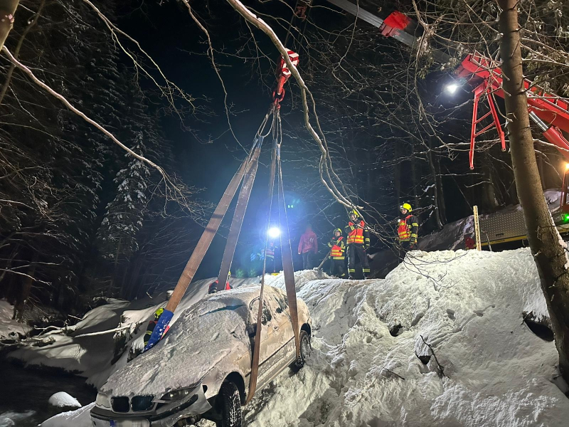 Fotogalerie - Zasněžený automobil vyprostili z Jizerky jilemničtí hasiči
