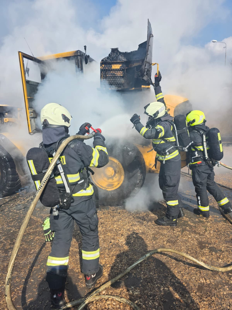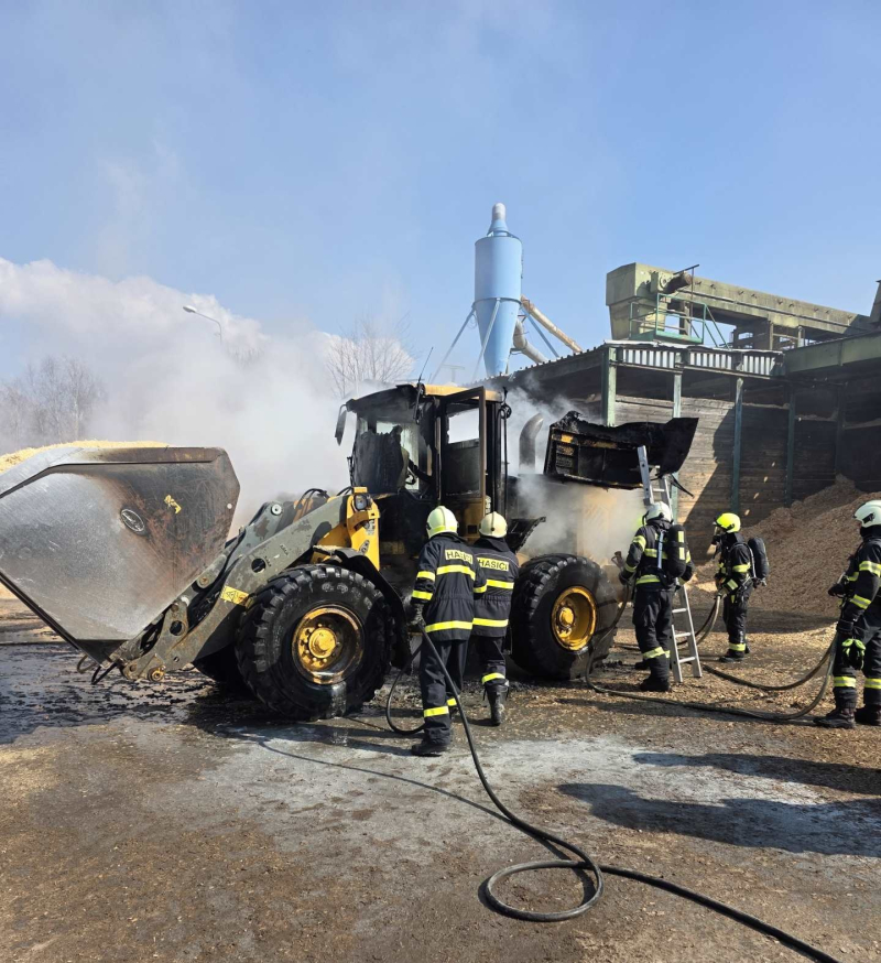 Fotogalerie - V obci Horka u Staré Paky hořel kolový nakladač