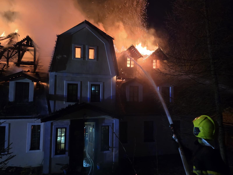 Otevřít související aktualitu: Dvoupatrový dům hořel na Benecku, zasahovalo 11 jednotek hasičů