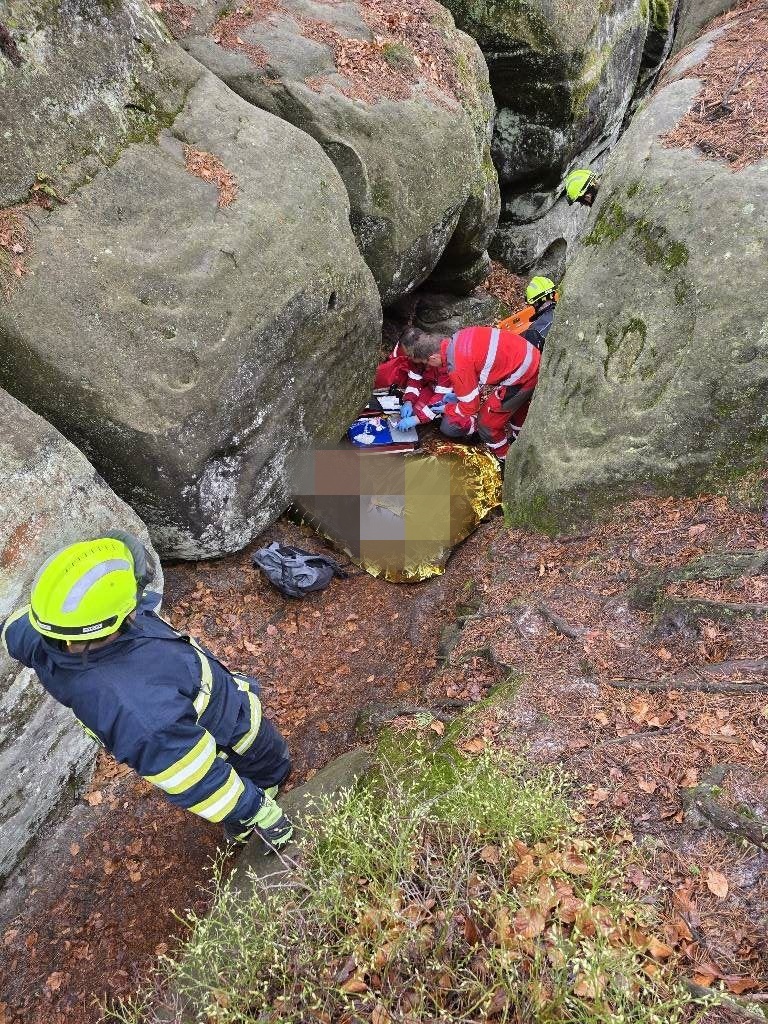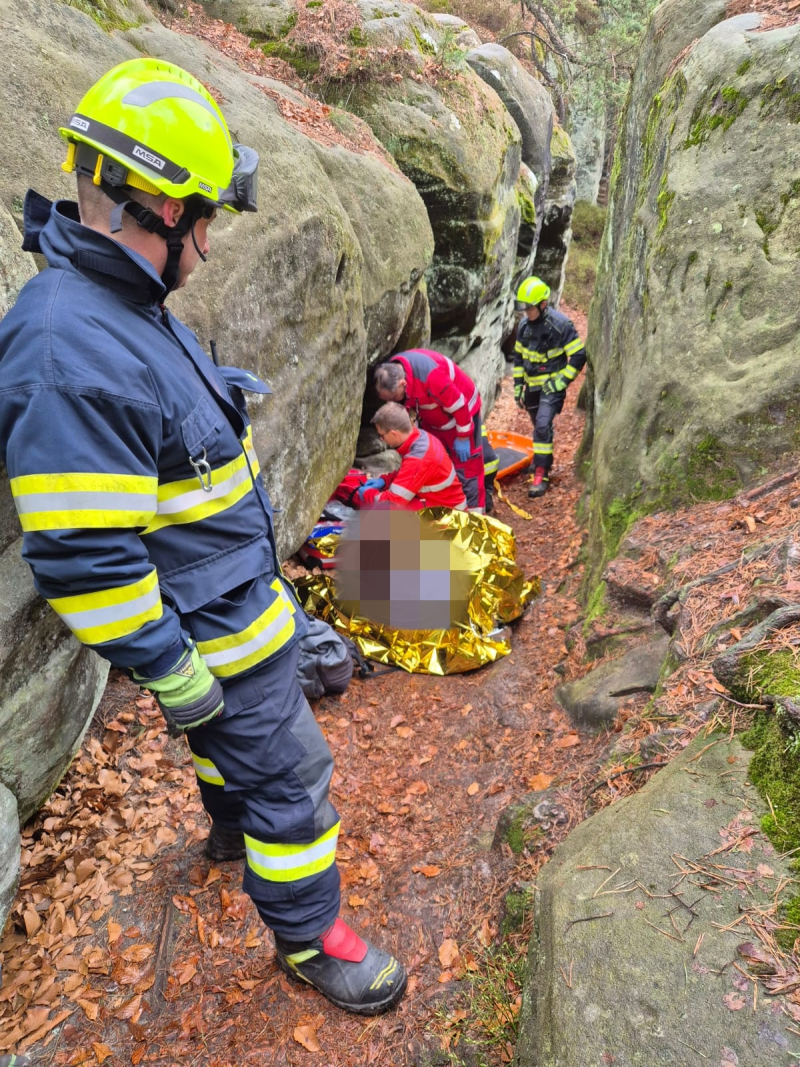 Fotogalerie - Hasiči pomáhali zachránit zraněnou turistku v Besedických skalách