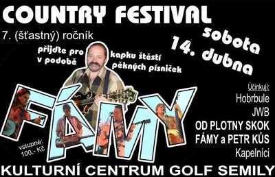 Sedmý (šťastný) ročník tradičního country festivalu. Účinkují Hobrbule, JWB, Kapelníci, dámská kapela Od plotny skok a skupina Fámy a Petr Kůs. Přijďte pro kapku štěstí v podobě pěkných písniček, srdečně zveme do kulturního domu, kde na Vás čeká příjemná hudba, stolová úprava sálu a barové občerstvení včetně točeného piva.