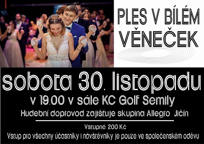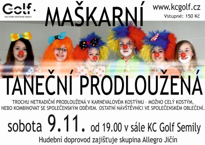 V sále KC Golf Semily od 19.00. Vstupné: 200 Kč/ kurzisté na legitimaci. Samostatná pozvánka