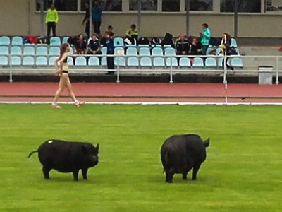 Obyvatelé Turnova u bývalého kina Bio ráj navštěvují již dlouho zaběhlá černá prasata, která se nedaří odchytit. Dvě tato chytrá zvířata zavítala v neděli 21. srpna i na atletický stadion Ludvíka Daňka a chtěla se zřejmě účastnit krajského přeboru družstev, ale do závodu nebyla přijata.