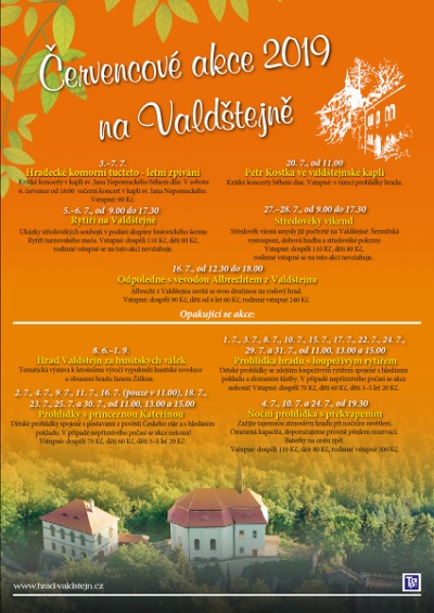 Letní sezona je již v plném proudu a hrad Valdštejn zve na nadcházející červencové akce. Program je skutečně velmi bohatý a díky pestrosti si každý přijde na své.