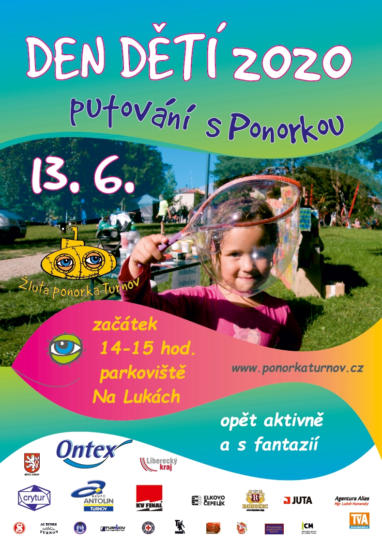 Středisko volného času Žlutá ponorka Turnov se jako hlavní organizátor rozhodl uspořádat Den Dětí s Ponorkou formou putování na trase dlouhé 1 km vhodné i pro kočárky. Věříme, že i přes některá omezení to bude odpoledne, které opět vdechne Turnovu společenský život. Při akci nedojde ke shlukování většího množství lidí na jednom stanovišti a aktivity budou minimálně kontaktní. Těšit se můžete na divadelní skeče, pouliční muzikanty, pohybové, vědomostní i tvořivé aktivity. Zakončení průvodu s možností získat dáreček/hračku bude na tradičním místě v parku. Startovat se bude na parkovišti na lukách.