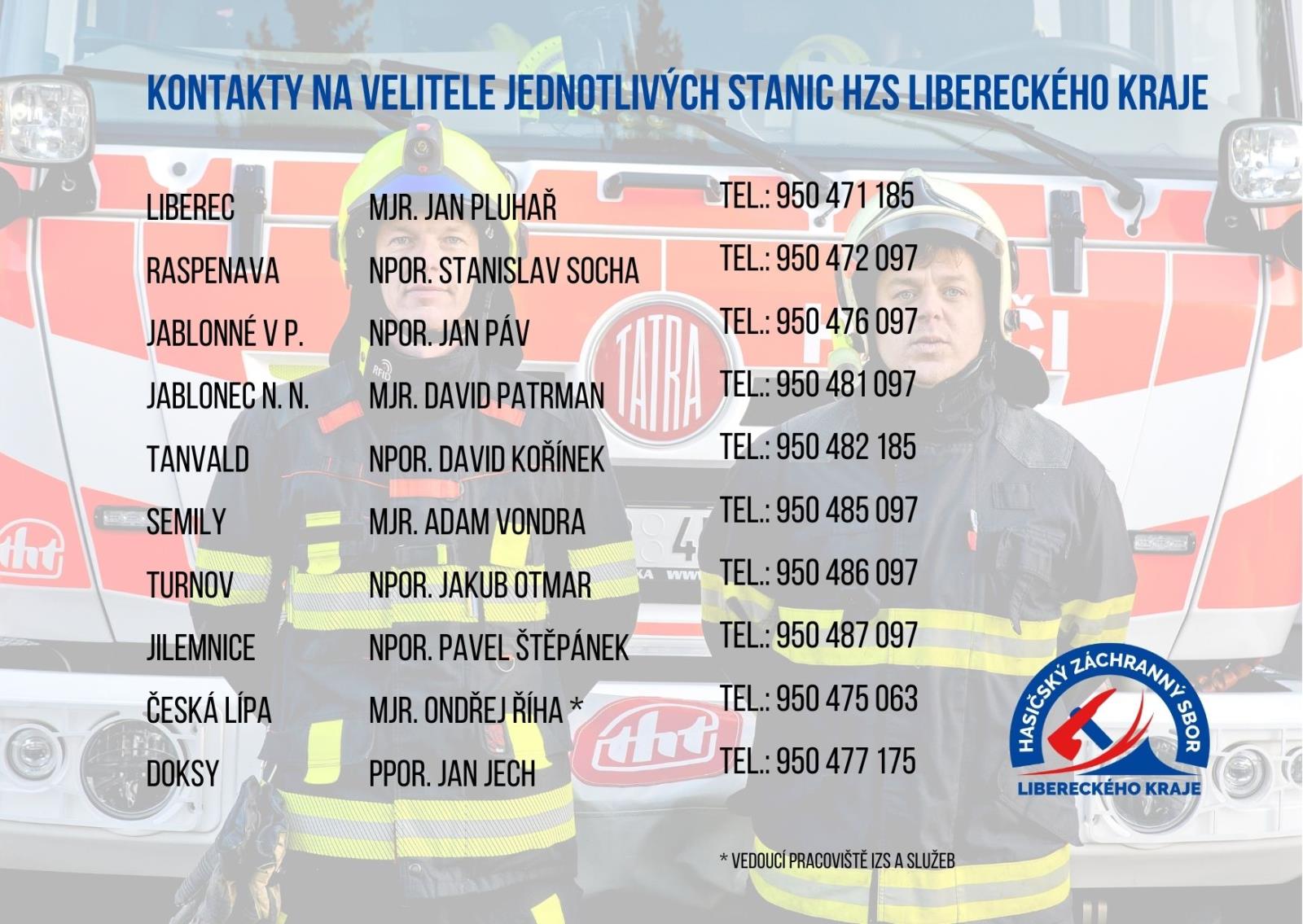 „Rádi vás zázemím stanic provedeme i s komentářem. Tak přijďte a dozvíte se víc o práci hasičů. Těšíme se na vás! Větší skupiny osob, zájemců o prohlídku, například školní skupiny, požádáme o předchozí telefonickou rezervaci přesného termínu, respektive hodiny prohlídky. Obracejte se, prosím, na velitele příslušných stanic. Kontakt na ně najdete v přiložené tabulce," uvedla tisková mluvčí HZS Libereckého kraje Jaroslava Benešová.