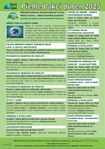 V průběhu měsíce dubna proběhne celá řada akcí pro mateřské, základní školy a veřejnost.