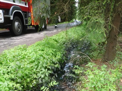 Hasiči vytahovali v Košťálově auto z potoka
