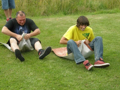 Skákání v pytli - slalom, tam i zpět po vyznačené trase.