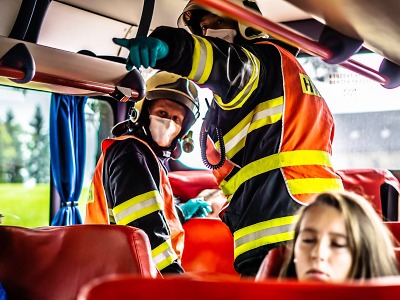 Zasahující jednotky měly za úkol po příjezdu na místo události zajištění autobusu, zabezpečení protipožárních opatření a za využití metody START (Snadná Terapie a Rychlé Třídění) vyřešit situaci, při které je na místě výrazně více zraněných osob než záchranářů.