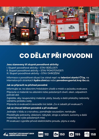 „Od středečního večera jsme na základě jednání Ústřední povodňové komise zaktivovali dobrovolné hasiče ve všech obcích, požádali jsme je o kontrolu a připravenost na povodně, ať už se jedná o prostředky jako čluny, záchranné prostředky na vodu, čerpadla," řekl plk. Jan Hadrbolec, ředitel HZS Libereckého kraje.