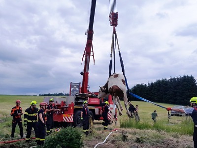 Hasiči v Lomnici vytahovali krávu ze septiku