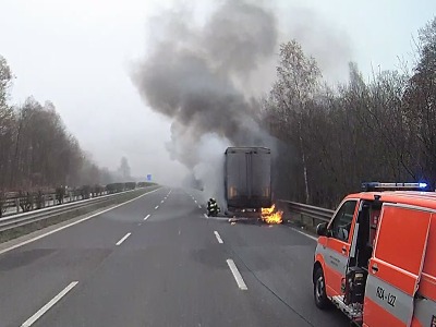 Hořel kamion na silnici I/35 ve směru na Turnov