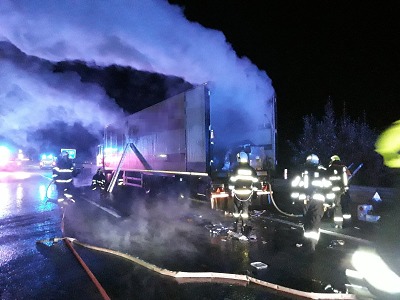 Hasiči vyjížděli v pátek po třetí hodně ranní k požáru nákladního automobilu na silnici I/35, 40 km, z Turnova na Liberec. Požárem byl zasažen tahač a část nákladu v návěsu s odpadem. Hasiči museli nejprve vynést materiál z návěsu a uklidit komunikaci pro zprůjezdnění.
