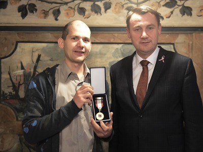 Hrdina Ivo Raisr převzal od hejtmana Záslužnou medaili I. stupně