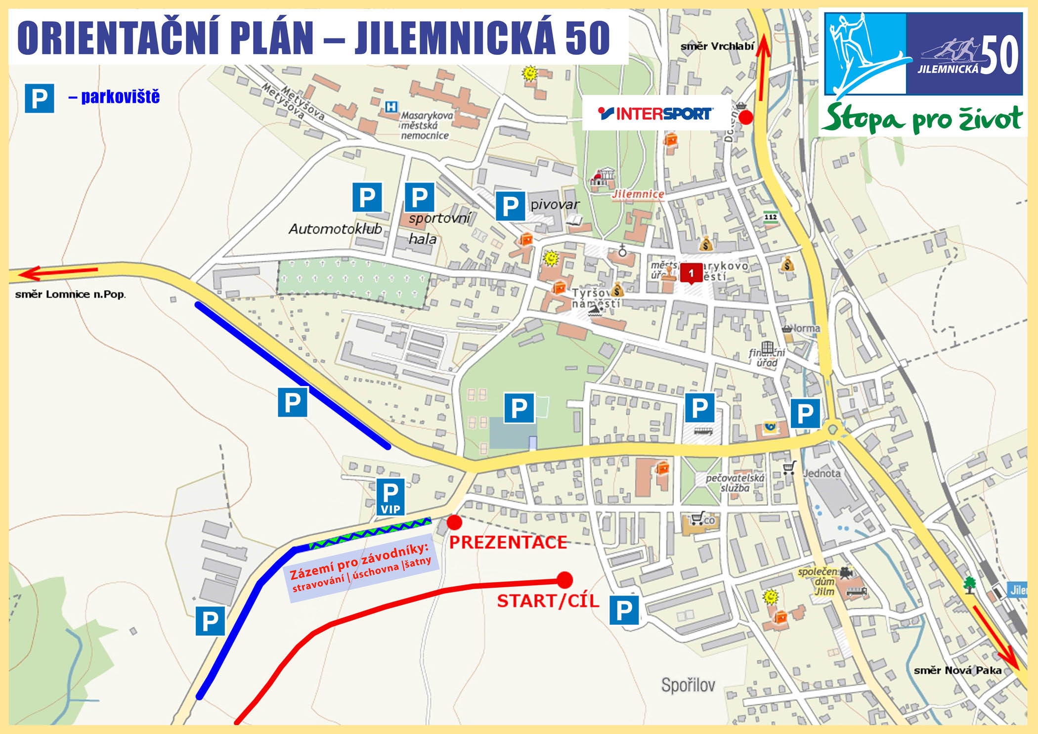 Závody v Jilemnici se uskuteční v lyžařském areálu Hraběnka. Zde bude start i cíl závodu, veškeré zázemí, výdej startovních čísel a doprovodné akce. Parkování v Jilemnici bude zajištěno jednosměrně na uzavřené komunikaci u areálu na Hraběnce, na autobusovém nádraží, na asfaltové ploše vedle fotbalového hřiště a dalších plochách.