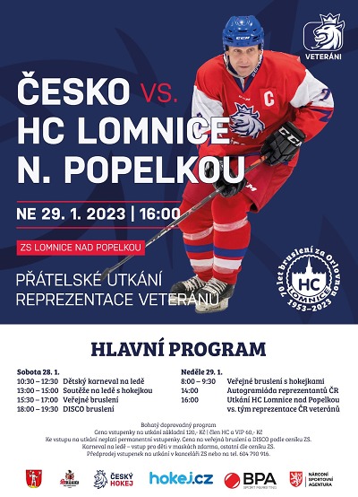 O víkendu 28. a 29. ledna 2023 proběhnou na Zimním stadionu v Lomnici nad Popelkou oslavy 70 let bruslení za Orlovnou. Vyvrcholením akce bude přátelské utkání repre ČR veteránů s domácím A týmem. Začátek utkání je v neděli 29. ledna v 16 hodin. Podrobná pozvánka