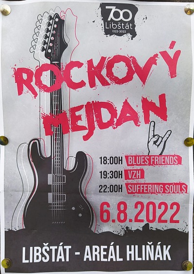 Rockový mejdan pořádají v sobotu 6. srpna v areálu Hliňák v Libštátě. Od 18 hodin zahrají kapely Blues Friends, od 19.30 VZH a od 22 hodin Suffering Souls. Koná se v rámci akcí na oslavu 700 let městysu Libštát. Samostatná pozvánka