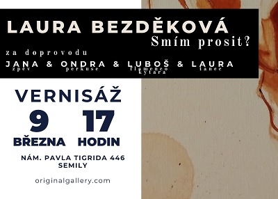 Už pátá výstava v Original Gallery v Semilech je nazvaná Smím prosit a přináší díla Laury Bezděkové. Vernisáž se koná v sobotu 9. března od 17 hodin za doprovodu Jany, Ondry, Luboše a Laury. Samostatná pozvánka