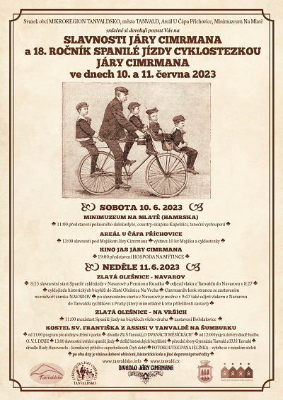 Dvoudenní Slavnosti Járy Cimrmana letos proběhnou 10. a 11. června jak pod Majákem Járy Cimrmana v Příchovicích, tak u Minimuzea Na Mlatě na Hamrskách, a nechybí samozřejmě ani Spanilá jízda Cyklostezkou Járy Cimrmana. Pozvánka s podrobným programem